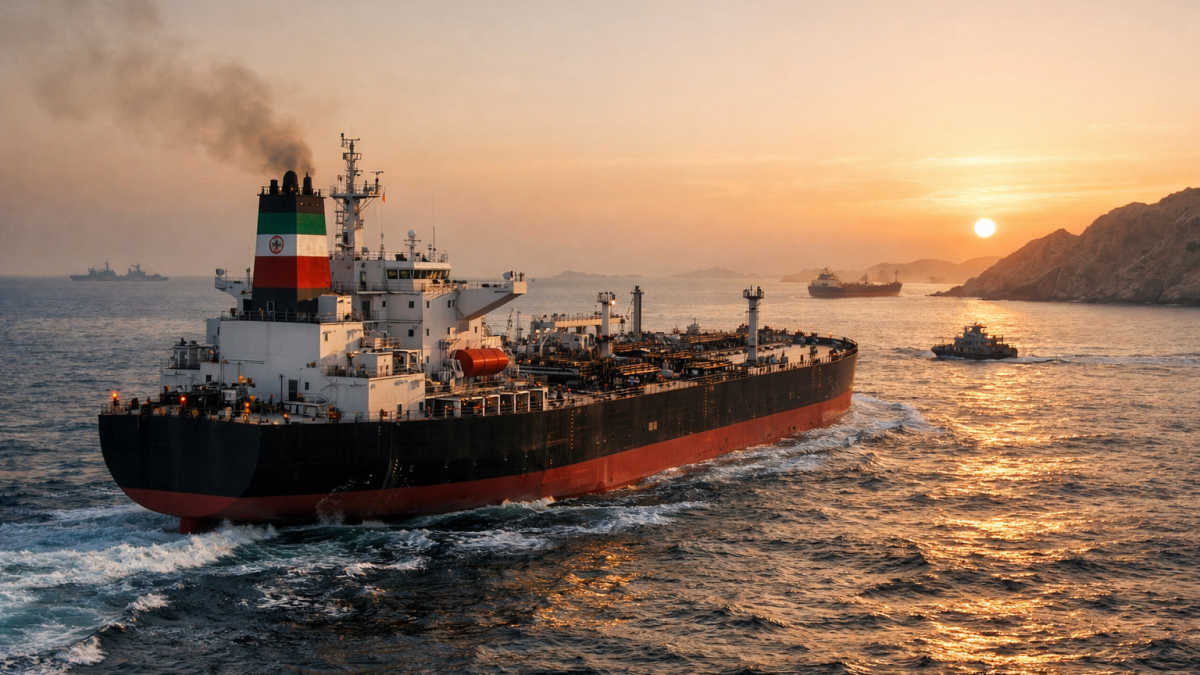 The route connects the Persian Gulf to the global shipping network and remains central to energy trade.
